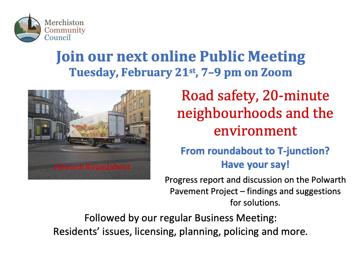 The public meeting of Merchiston Community Council will kick off with a presentation of recent findings by the Polwarth Pavement Project. This will be the first opportunity to hear first-hand from the project leaders, Roma Menlowe and John McKenna.