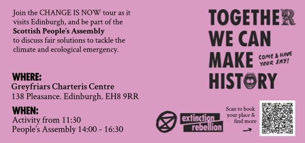The subject of the People’s Assembly will be: How do we respond to the crisis we face together? This question will be debated by People’s Assemblies across the country during the Extinction Rebellion Change Is Now Tour, to create a mandate for change that the government must listen to.